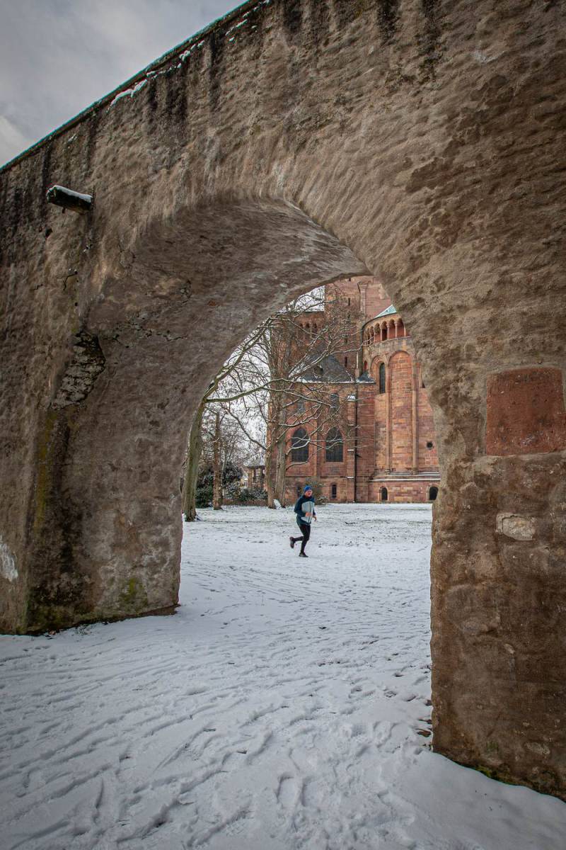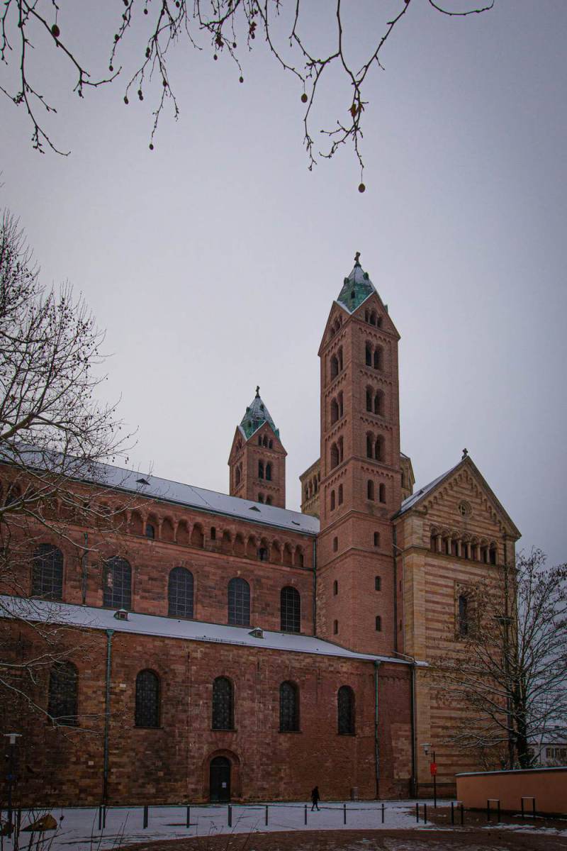 Der Speyerer Dom ist zu jeder Jahreszeit eine beeindruckende Sehenswürdigkeit. Doch wenn sich der Schnee über die Stadt legt und die Dächer und Bäume mit einer weißen Decke bedeckt, bekommt die Kathedrale eine besonders malerische Wirkung.